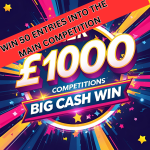 FOR JUST 39P PER ENTRY, YOU WILL HAVE THE CHANCE OF WINNING 50 ENTRIES INTO THE MAIN COMPETITION OF £1000 TAX FREE CASH!!